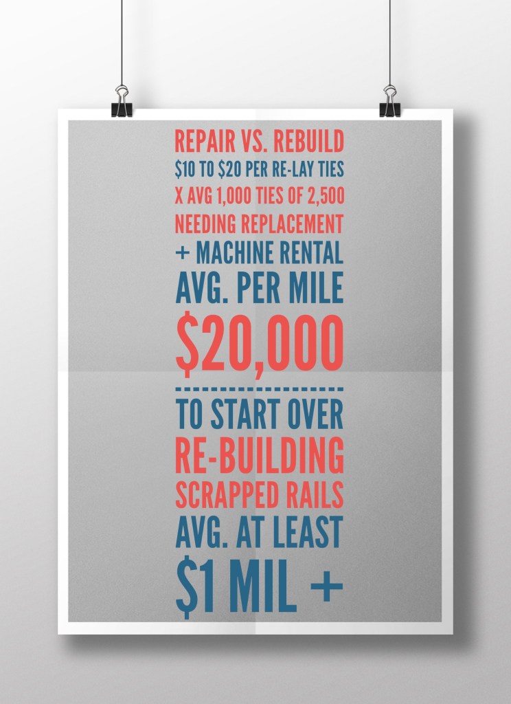 “The real problem would be the permits,” says George Bain of the UDRR Corp. “A railroad does not need a permit to maintain or repair itself unless it involves the waterways nearby. [Re]building a railroad would require permits and planning that would take decades.”